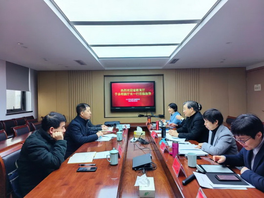 2月2日上午,省委教育工委委员,省教育厅党组成员、副厅长于永明一行专程走访社省委机关,与社省委领导和专家进行对口联系工作座谈交流,征求社省委对教育厅工作的意见和对我省高等教育、职业教育事业发展的建议。省政协副主席、社省委主委叶正波热情接待于永明一行,社省委专职副主委丁晓燕主持座谈会。